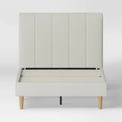 Dorm Twin Bed Cream – Room Essentials™: Upholstered Headboard, Plywood Frame, No Box Spring Needed