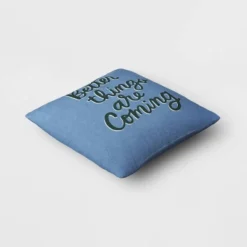 'Better Things Are Coming' Embroidered Cotton Square Throw Pillow Blue – Room Essentials™